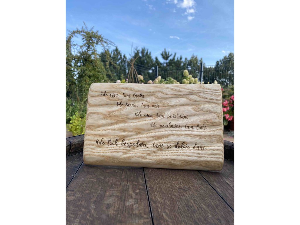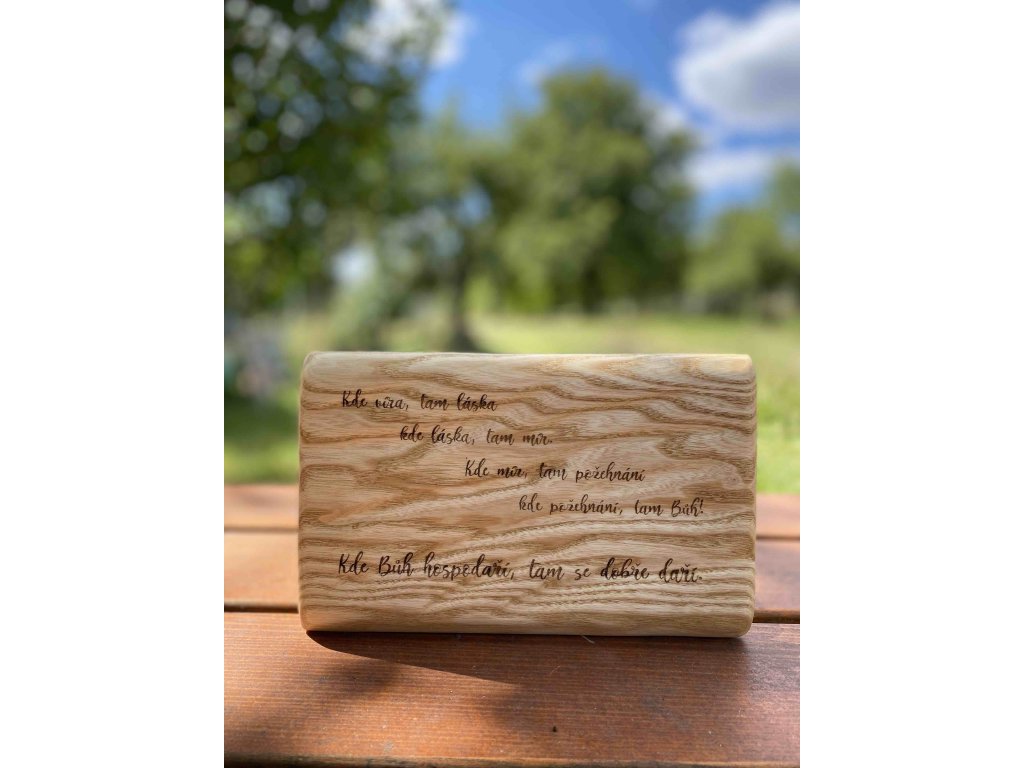 Jedinečná dekorativní destička z kvalitního dřeva, která zaujme nejen gravírovaným motivem, ale také originálně zpracovaným povrchem. Ručně vytvořené jemné vlnky dodávají destičce plastický vzhled, zatímco jejich dohladka vybroušený povrch zajišťuje příjemný dotek a elegantní vzhled.