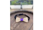 Ozdobení látkou ve střední části motýlku volím tak, aby vkusem seděl ke stylu motýlku a podle tématiky, kterou daný motýlek vytváří. Vše ručně šiji bez použití lepidel s pečlivým výběrem použitých látek.